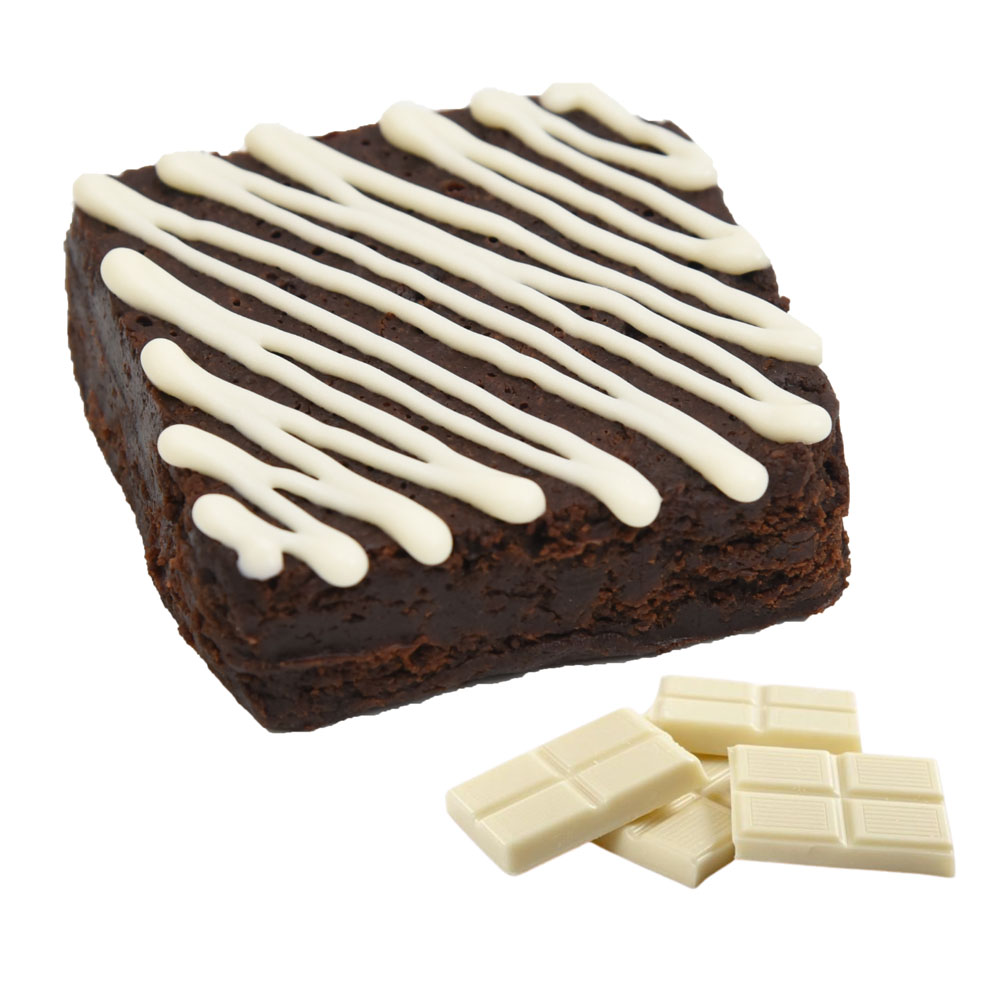 Brownie de avena endulzado con panela orgánica y toppings de chocolate blanco
