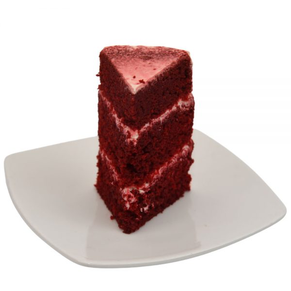Nuestra torta de Red Velvet o Terciopelo Rojo está cubierta y rellena con una deliciosa crema de queso. Decorada con un cupcake y deliciosos y suaves suspiros que se derriten en la boca.